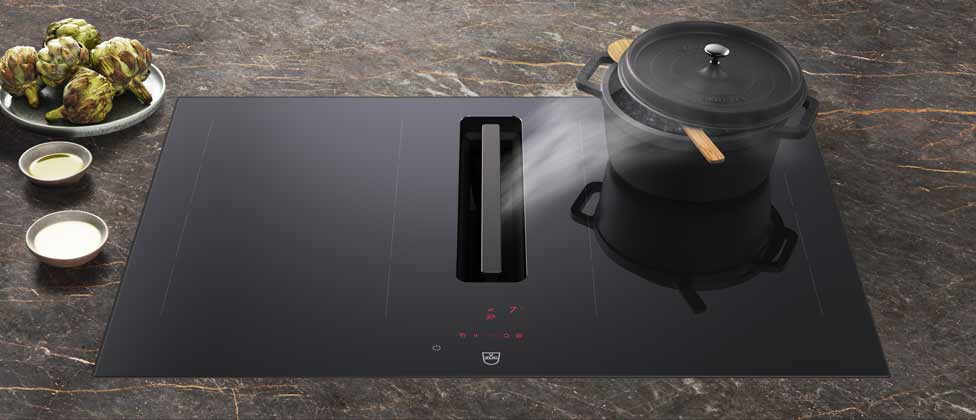 De beste kookprestaties en stille afzuiging komen samen in deze nieuwe kookplaten van Siemens. Dat is InductionAir Plus. Deze optie voorziet uvan alle gemakken tijdens het koken. Nadenken over de afzuiging niet meer nodig met de Siemens EX877NX68E : dit wordt automatisch afgestemd tijdens het koken. De afzuiging is nog stiller en bevindt zich niet ter hoogte van je hoofd, waardoor je de directe omgeving nog goed kunt horen.